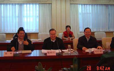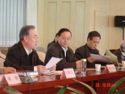 | 人口計生委主任、第五屆中華人口獎遴選委員會主任張維慶(中)主持會議,左為遴選委員會委員、人民日報社副總編梁衡,右為衛生部副部長蔣作君。 |