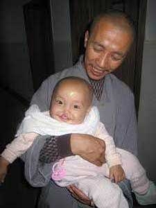 我寺收養的棄嬰,釋德剛滿10個月,只因小釋德剛出生有腭唇病,被親生父母拋棄。我們從收養釋德之日起,對棄嬰的腭唇病憂心忡忡,四方訪問求醫。