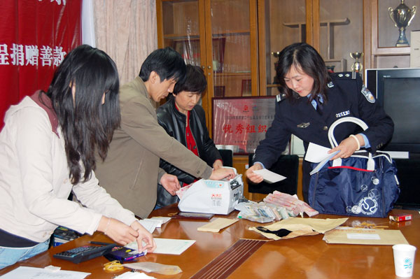 今年,中央國(guó)家機(jī)關(guān)干部職工在剛剛為青海玉樹地震捐款之后,熱情不減,在4月12日至18日“向?qū)嵭杏?jì)劃生育的貧困母親獻(xiàn)愛心”捐款活動(dòng)周內(nèi),各單位精心組織,通過召開動(dòng)員會(huì)、懸掛橫幅、擺放宣傳展板、張貼宣傳畫、電子屏幕播放宣傳片、舉行捐款儀式等形式開展了多樣且富有成效的宣傳活動(dòng)。在中央國(guó)家機(jī)關(guān)計(jì)生委的精心組織和各部委的大力支持下,特別是在各級(jí)領(lǐng)導(dǎo)的關(guān)懷以及計(jì)生干部的積極動(dòng)員下,截止 4 月 30日 ,共有 87 個(gè)部委參與了此次活動(dòng),捐款 4091529 元。中國(guó)人民銀行、中國(guó)農(nóng)業(yè)銀行均超過 35 萬元;中國(guó)建設(shè)銀行、中科院、農(nóng)業(yè)部均超過 20 萬元;中國(guó)光大集團(tuán)、國(guó)家安全部、國(guó)家體育總局、國(guó)家開發(fā)銀行、國(guó)資委、信息產(chǎn)業(yè)部機(jī)關(guān)第二服務(wù)中心、國(guó)家質(zhì)量監(jiān)督檢疫總局、外交部等單位均超過 10 萬元。