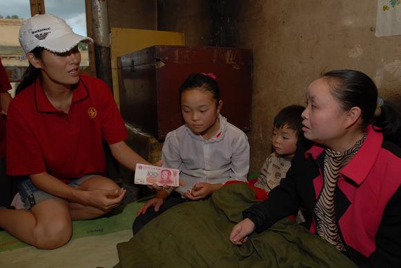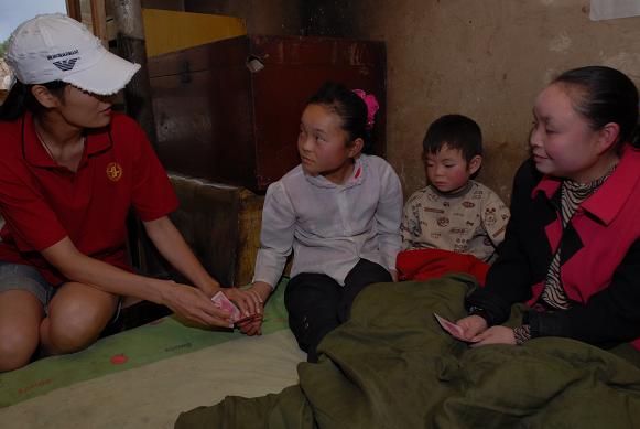 的學費,但是長期的吃藥和修繕家里破舊的房子已經讓家里欠下了4000多元錢無力償還。我們給她送去了,一位北京通洲的好心人給她的400元錢,轉身走之