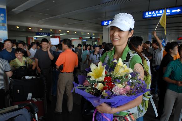 圖一:在蘭州機場馬艷麗等受到熱烈歡迎