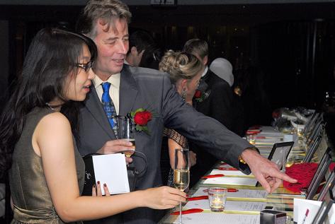圖2:活動組委會募集到了25件拍品進行無聲拍賣,嘉賓們在拍品介紹前駐足觀看