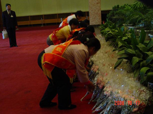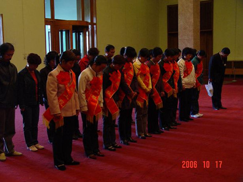 母親代表參觀毛主席紀念堂圖一:母親代表向毛主席塑像獻花圖二:母親代表向毛主塑像默哀圖三:母親代表在毛主席塑像前合影留念