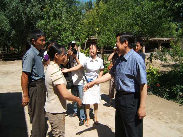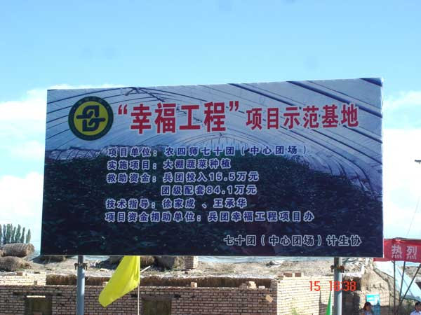 70團2連幸福工程項目示范基地與會領導到農四師70團項目點參觀與會領導來到70團二連幸福工程項目示范基地項目管理者向前來參觀的領導介紹項目實施情況與會代表參觀70團二連幸福工程項目點——蔬菜基地誘人的綠色蔬菜受助母親種植的蔬菜大棚路邊的醒目標語劉漢彬(右一)副主任與受助母親馮春燕親切交談劉漢彬副主任(右一)、苗霞理事長(右二)探望受助母親參觀馮春燕的牛舍感謝領導的關心兵團副司令阿勒布斯拜·拉合木(左一)向受助母親馮春燕詢問生產情況劉漢彬主任向馮春燕了解生活情況與會代表同馮春燕一家交流與“幸福母親”合影留念