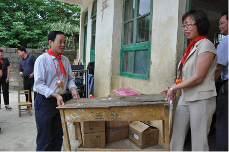 捐贈儀式上,牛艷平部長代表中國人口福利基金會向林逢鎮東往小學的師生表示親切的慰問。牛艷平部長說:“在六一兒童節前夕,我們將飽含真誠愛心的桌椅、書包和玩具送來,希望同學們努力學習,刻苦鉆研,為建設更加美麗、更加富饒、更加和諧的家鄉和祖國貢獻力量!”