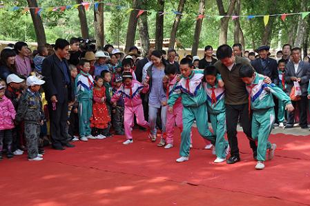 捐贈儀式過后,同學們和參加活動的領導嘉賓在操場上做起了游戲。通過綁腿跑和吹氣球兩個小游戲,孩子們與嘉賓建立起默契的合作關系,也懂得了團結友愛、互相勉勵,才能獲得勝利。
