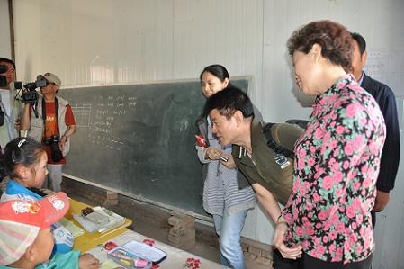 捐贈儀式后,領導嘉賓到教室中與孩子們親切交談