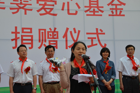楊文莊副理事長兼秘書長在捐贈儀式上講話,鼓勵同學們要珍惜眼前的幸福,用自己的努力創造更加美好的明天。劉光秘書長在講話中提出,希望同學們不辜負愛心人士寄予的厚望,克服困難、勤奮學習,以優異的成績作為回報。