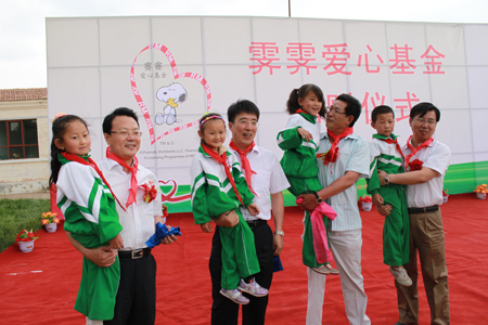 News 2012年6月19日,中國人口福利基金會霽霽愛心基金捐贈儀式在內蒙古自治區包頭市達茂旗烏克忽洞鎮小學舉行,我會副理事長兼秘書長楊文莊、霽霽(上海)貿易有限公司總經理助理陳穎、內蒙古自治區計生協秘書長劉光、包頭市計生委主任賀俊、以及達茂旗等有關領導出席活動。此次捐贈,霽霽愛心基金共為達茂旗烏克忽洞鎮小學、大蘇吉小學、百靈廟鎮第二小學、北方春蕾小學捐贈1000套桌椅、書包、玩具公仔、驅蚊套裝。
