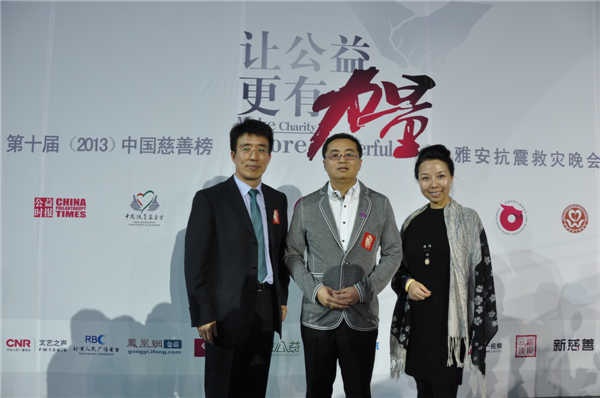 News4月27日,為幫助四川省雅安市地震災區的同胞重建家園,由《公益時報》社、中國人口福利基金會、中國扶貧基金會、中國婦女發展基金會、中國青少年發展基金會、中華環境保護基金會、中國華僑公益基金會、中國社會工作協會等單位聯合發起,在北京國家游泳中心(水立方)舉辦“讓公益更有力量”第十屆(2013)中國慈善榜活動暨祝福雅安主題晚會。第十屆全國人大常委會副委員長司馬義?艾買提、中國人口福利基金會理事長趙炳禮以及其他組織的領導同志出席活動并給獲獎者頒獎。