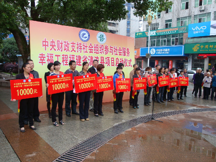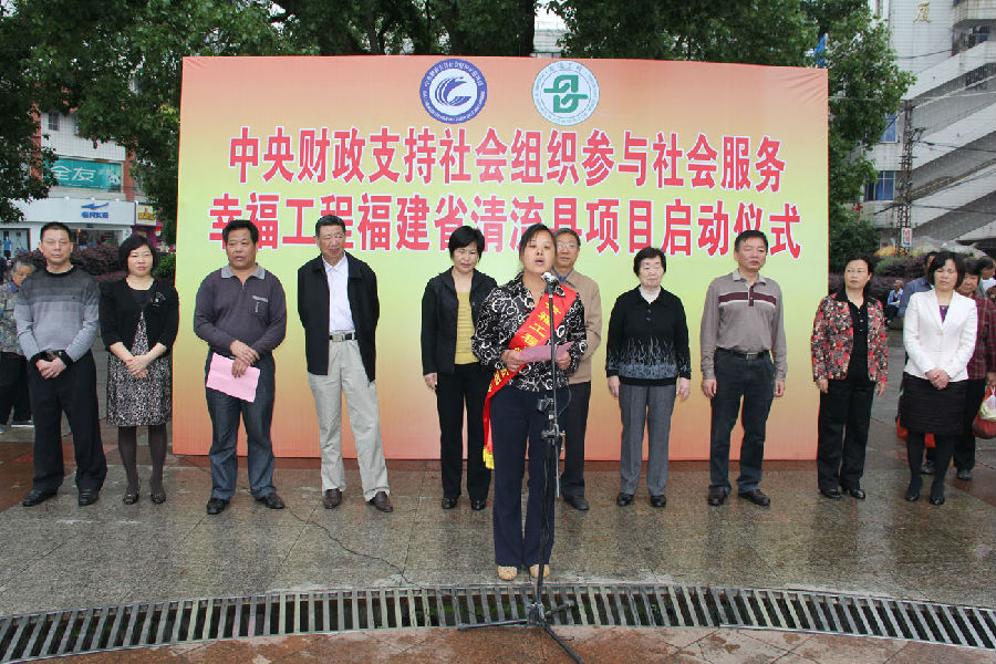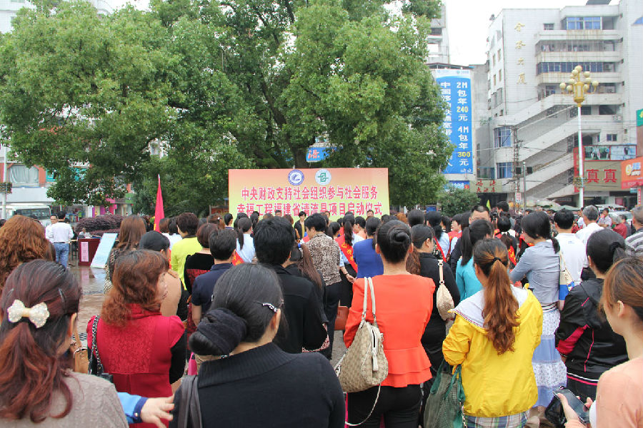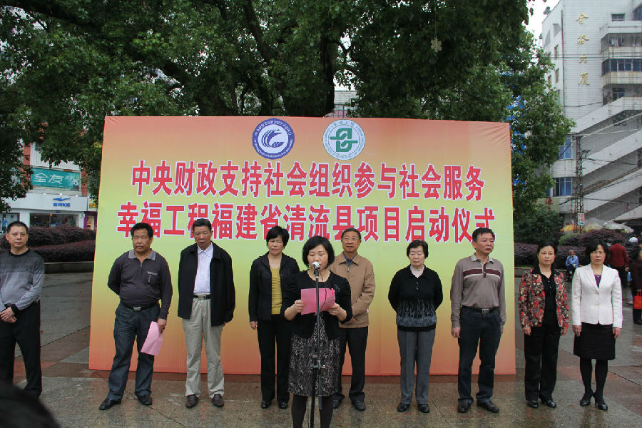 幫助困境母親,建設(shè)幸福家庭5月8日上午, 福建省清流縣在龍津廣場(chǎng)隆重舉行中央財(cái)政支持社會(huì)組織參與幸福工程福建省清流縣項(xiàng)目啟動(dòng)儀式。三明市計(jì)生協(xié)會(huì)會(huì)長(zhǎng)吳金容、副會(huì)長(zhǎng)周申、劉水生、常務(wù)專職副會(huì)長(zhǎng)蘇泉福、專職副會(huì)長(zhǎng)廖寶珍,縣有關(guān)領(lǐng)導(dǎo),縣、鄉(xiāng)計(jì)生協(xié)會(huì)干部,巾幗志愿者及受助母親代表100多人參加了啟動(dòng)儀式。清流縣政府副縣長(zhǎng)、縣幸福工程領(lǐng)導(dǎo)小組組長(zhǎng)黃月珍主持了啟動(dòng)儀式。