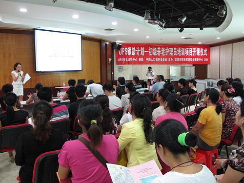 News2013年7月18日,“中國(guó)人口福利基金會(huì)UPS銀齡計(jì)劃-初級(jí)養(yǎng)老護(hù)理員培訓(xùn)項(xiàng)目”開(kāi)課儀式在深圳市婦兒大廈舉行,中國(guó)人口福利基金會(huì)項(xiàng)目管理部牛艷平部長(zhǎng)、深圳市民政局社工處駱冰處長(zhǎng)、深圳市社工協(xié)會(huì)閭曉文秘書(shū)長(zhǎng)、深圳市婦聯(lián)權(quán)益部金麗部長(zhǎng)等出席了本次活動(dòng),與此同時(shí),UPS亞太轉(zhuǎn)運(yùn)中心與深圳市社會(huì)工作碩士志愿者隊(duì)的志愿者、陽(yáng)光媽媽項(xiàng)目代表、UPS銀齡計(jì)劃的學(xué)員代表也參加了本次活動(dòng)。