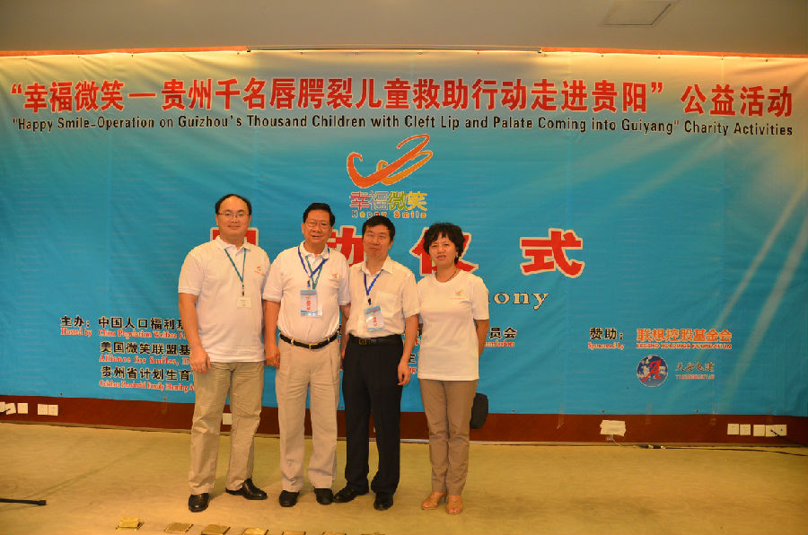 自右向左依次是:中國人口福利基金會國際合作部部長李曉琳、貴州省計生協副會長周承洲、微笑聯盟副會長黃球綸、美國微笑聯盟醫療隊隊長李政謙