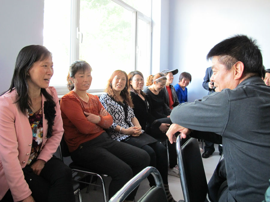 十幾位幸福工程資助的貧困母親一一介紹了在接受幸福工程資助前和資助后家里的不同情況。葛振江副秘書長問她們,是怎么知道幸福工程這個項目的、項目好不好申請、愿不愿意到期還款付息、如果到了還款期還不上錢怎么辦、地方項目辦有沒有給她們做過項目培訓等。她們紛紛回答,是從到村里采集貧困母親信息的項目人員那里知道的幸福工程;項目很好申請,只要符合要求就可以;到期愿意還款付息,因為這些都是善心人士的捐款,不能不還;到期如果還不上,她們有三人一組的聯保,自己實在還不上,組里其他組員也會幫忙還上,當然她們是盡量不讓這種事情發生;地方項目辦對她們有相關的培訓,不懂的她們可以隨時問。