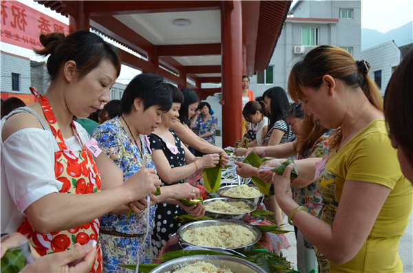 幫助困境母親,建設幸福家庭5月29日,是中國計生協會成立34周年紀念日,也恰逢一年一度的端午節即將來臨,洋中鎮計生協會聯合鎮計生辦、鎮郵政儲蓄所在好西鄉廣場開展以“粽葉飄香,祝福郵你,歡度佳節,共建西鄉”為主題“5.29會員活動日”宣傳活動。一大早,廣場就人頭攢動、歡聲笑語、粽葉飄香,洋中鎮“致富能人+貧困母親”新模式救助項目實施點美翔服裝廠廠長、幸福工程致富帶頭人阮美銀,帶領7位結對幫扶的受助母親和一些計生協會會員組成參賽隊伍,在鎮計生協會的組織下,開始了一場別開生面的包粽子比賽活動。只聽見一聲哨子響,育齡婦女的一 雙雙巧手舞動,粽葉、紅棗和糯米在她們的手中變成了一個個精巧玲瓏的粽子,不一會兒,形狀各異的粽子便擺滿了一大桌,大家有說有笑,邊包粽子邊討論著計劃 生育政策法規、生殖健康、孕期保健等計生知識,現場氣氛十分活躍。