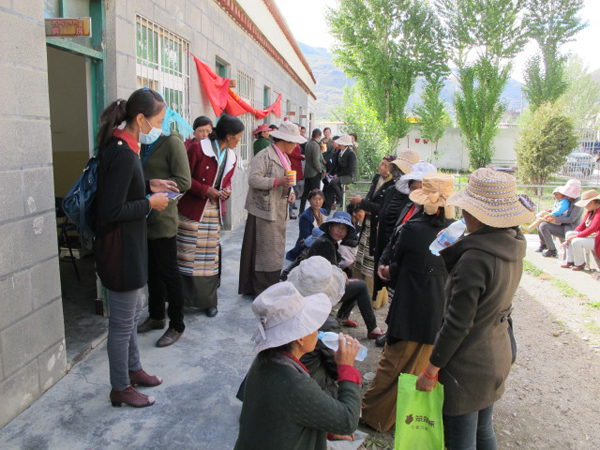 News2014年7月7日至14日,我會“生殖健康援助行動”捐贈義診活動在西藏自治區山南地區桑日縣絨鄉、扎囊縣吉汝鄉舉行。7月11日,生殖健康援助行動捐贈儀式在扎囊縣吉汝鄉舉行,自治區衛生計生委組建班子成員、原自治區衛生廳副廳長兼第一人民醫院院長胡學軍同志、山南地區衛生局桑杰群培局長、扎囊縣政府閆春杰副縣長、我會國內項目部劉麗容部長參加了捐贈儀式。胡學軍同志、桑杰群培局長及閆春杰副縣長對我會和赴藏的醫務工作人員表達了真誠的敬意和真摯的感謝。劉麗容部長代表人基會感謝自治區及山南地區對本次活動的大力支持和積極配合,感謝浙江婦科專家不畏高反為藏區育齡婦女義診的善舉,同時向參加捐贈儀式的人員詳盡介紹了我會“生殖健康援助行動”的宗旨和目標。