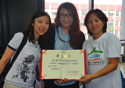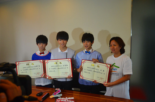 中國人口福利基金會(huì)國際合作部部長李曉琳為TFBOYS頒發(fā)愛心大使聘書