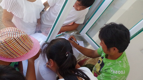 8月份正是農忙時節,母親們又要操持家務,而且村與村之間的距離十分遙遠,想要把受助母親們聚集起參加問卷調查并不是件容易的事情。然而,當母親們聽說是有關幸福工程的事情,紛紛放下手中農活,立即奔向指定地點,還有的母親抱著剛出生不久的小寶貝一起來到現場參加活動。在被問及到為什么一定要參加評估的時候,母親們紛紛表達了對幸福工程的感謝,感恩于幸福工程切實地改變了她們的生活,所以她們愿意克服各種不便前來配合工作。
