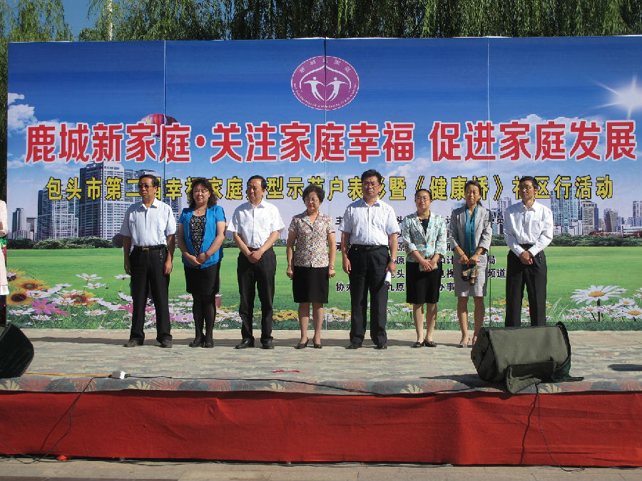 為進一步弘揚健康生活、尊老愛幼、鄰里互助、奉獻社會的良好風尚,9月3日,包頭市舉辦了以“鹿城新家庭·關注家庭幸福 促進家庭發展”為主題的第二屆計劃生育幸福家庭典型示范戶表彰暨《健康橋》社區行活動,這是我市在創新社會管理和人口計生工作轉型的新形勢下,深入推進鹿城新家庭創建工作、送健康到社區、關注人口發展、關注群眾健康、關注家庭幸福的一項重要舉措,也是貫徹落實全國創建幸福家庭活動會議精神的具體行動。