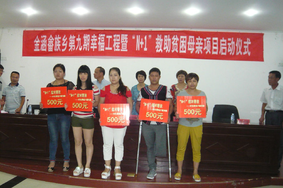 金涵鄉根據計生貧困母親及其家庭實際情況和需求,啟動“N+1”救助新模式。全鄉副科級以上干部、包村干部、鄉計生辦、計生協會、鄉直有關職能部門及工作人員,尤其是黨員領導干部,在所轄范圍內聯合與1戶計生貧困母親及其家庭結成幫扶對子,通過連續3年的結對幫扶,使其走向富裕,期間如有幫扶對象已脫貧致富的,再從各村計生貧困母親及其家庭中擇選對象進行結對幫扶。結對幫扶對象主要分兩類:(1)遵守并帶頭執行計劃生育政策的農村獨生子女戶和二女結扎戶貧困母親及其家庭。(2)計生家庭父母雙亡的孤兒及因病或意外傷殘的計生貧困母親及其家庭。幫扶措施包括:(1)項目幫扶。在幸福工程、小額貼息貸款及生產發展項目上對符合條件的計生貧困母親及其家庭進行傾斜,并在土地流轉費及種苗農資等方面每戶補貼不少于2000元。(2)技術幫扶。每年定期組織農業、林業、畜牧、科技等有關專家,舉辦2-3期的農村實用技術培訓班。(3)就業幫扶。幫助聯系境內企業,在組織外出務工人員培訓及錄用就業中優先安排計生貧困母親及其家庭成員,幫助其就業增收。(4)成才幫扶。對農村獨生子女和二女結扎戶家庭子女考上大學本科的,給予一次性獎勵500-1000元,鼓勵成長成才。(5)慰問幫扶。利用春節等傳統節日進行走訪慰問,每年每戶慰問金不低于1000元,體現黨和政府的溫暖。(6)關懷幫扶。每年上門探望不少于2次,通過做家務、聊天等活動,為計生困難家庭送溫暖送關懷。