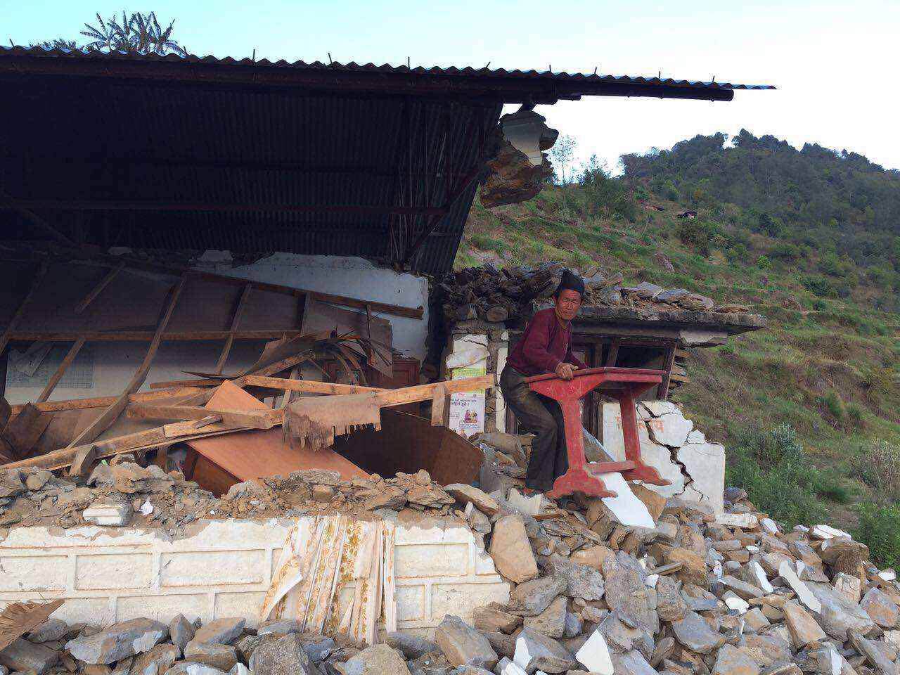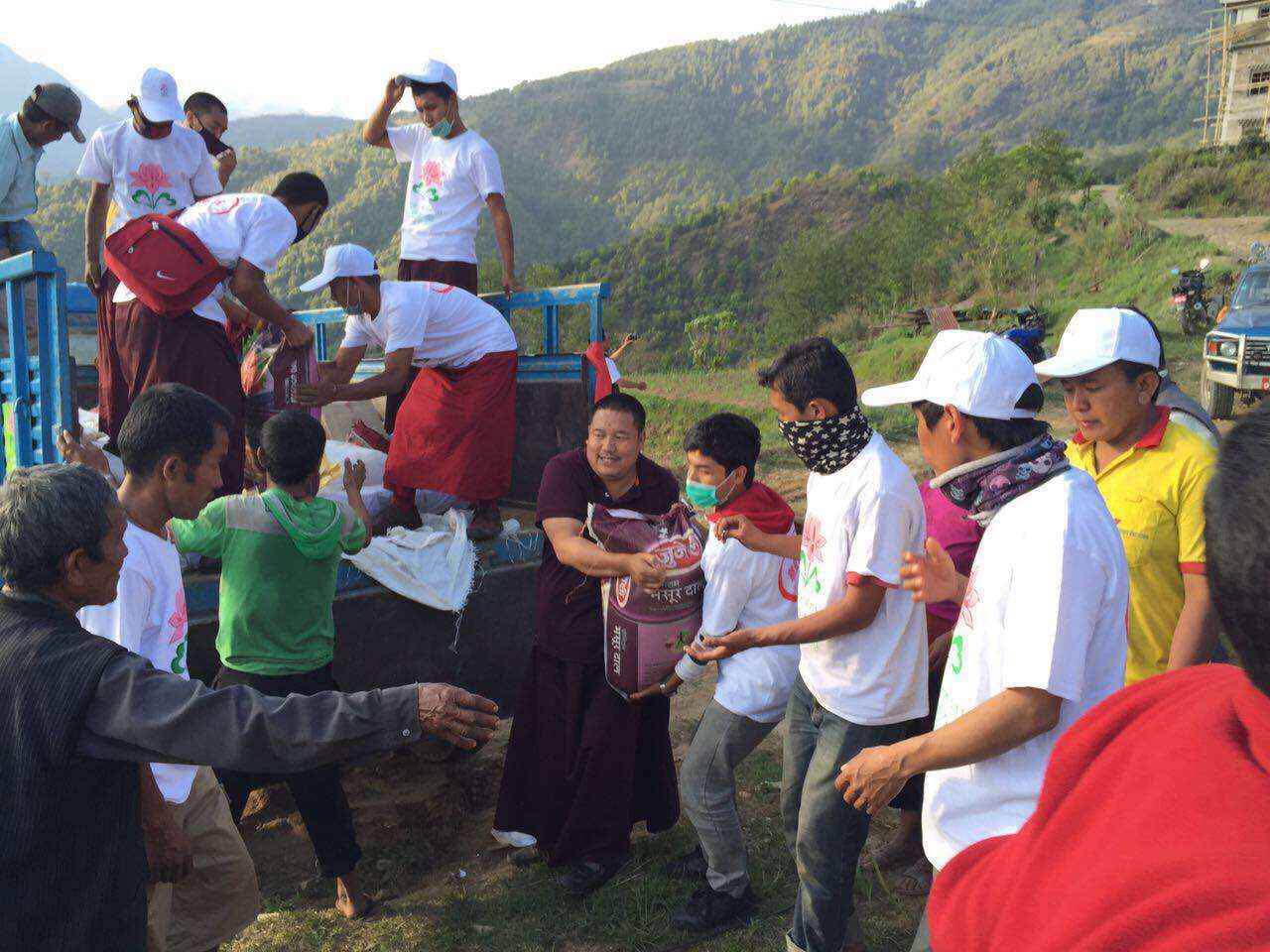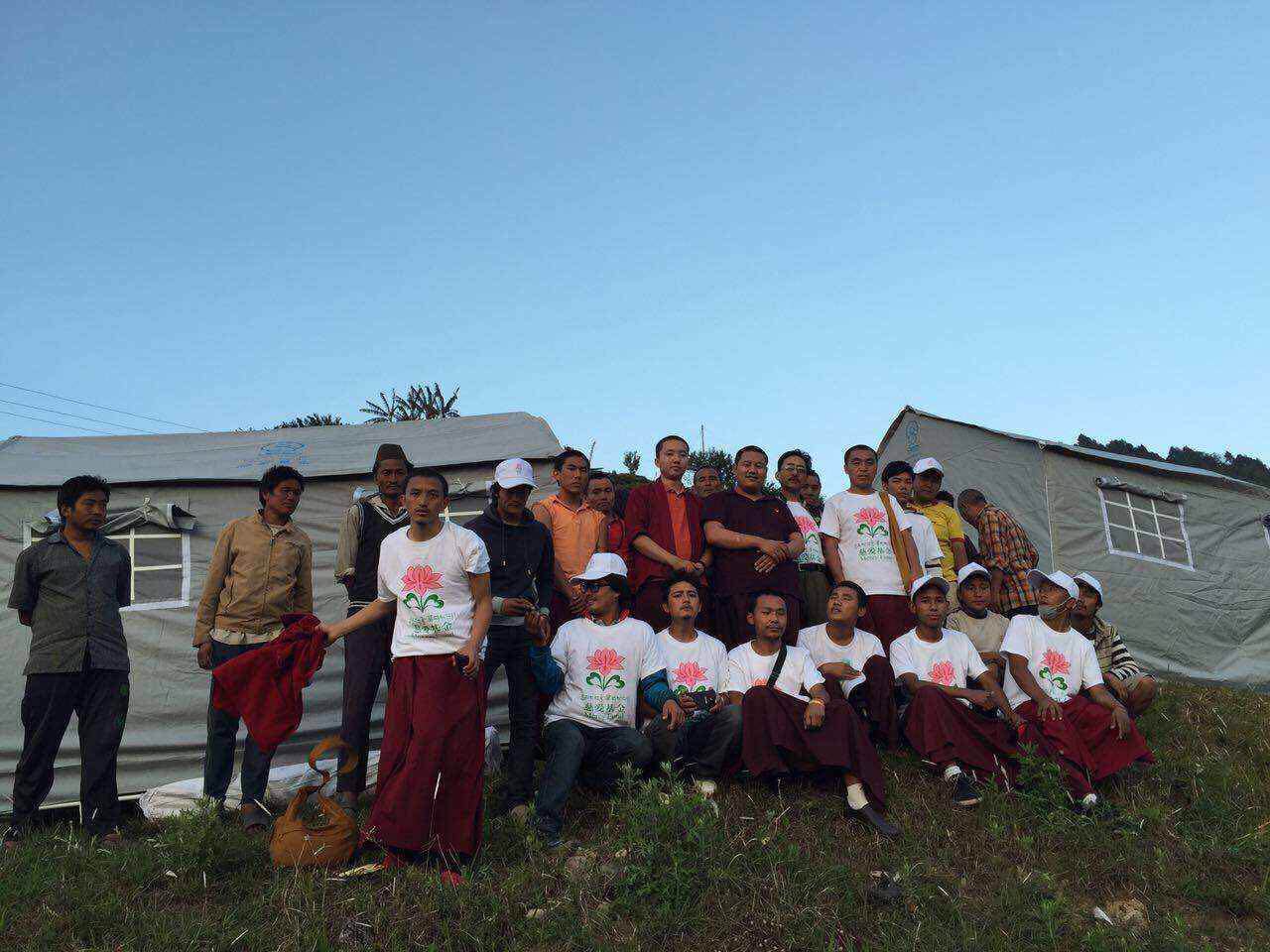 “走了11小時的山路,一路顛到了喜馬拉雅山下的Yolmo地區的一個村莊,這里大部分居住的是藏傳佛教徒,在Yolmo這個區域,統計到昨天,死亡人數超過了2500人,一路上我就沒有看到幾棟還可以居住的房子。遠眺雪山頂,看著如今滿目瘡痍的村莊,護佑村莊的白塔被震倒了,只剩下五彩的經幡在風中孤單的飄揚。因為偏僻,這里還沒有什么物資送進來,我看到最好的臨時避難居所也就是能用篷布遮蓋嚴實的小棚子,大多數的災民居住在四周無遮擋的棚子下,很難想象在夜涼的尼泊爾,缺衣少被的災民如何度過。慈愛基金給災民送來了米、篷布和帳篷,志愿者們當場就支起了兩個慈愛帳篷,就在他們剛剛倒塌的房子前,一位村民迫不及待的在那已成廢墟的家中搬出了一個桌子,它成了慈愛之家的第一件家具。對于今天的尼泊爾災區,面對大量的需要安置的災民,我們能做的還是微乎其微,不過,我們一直在努力,和許多股小愛一起匯集成大愛,幫助災后的尼泊爾人早日重建家園!”——加措活佛