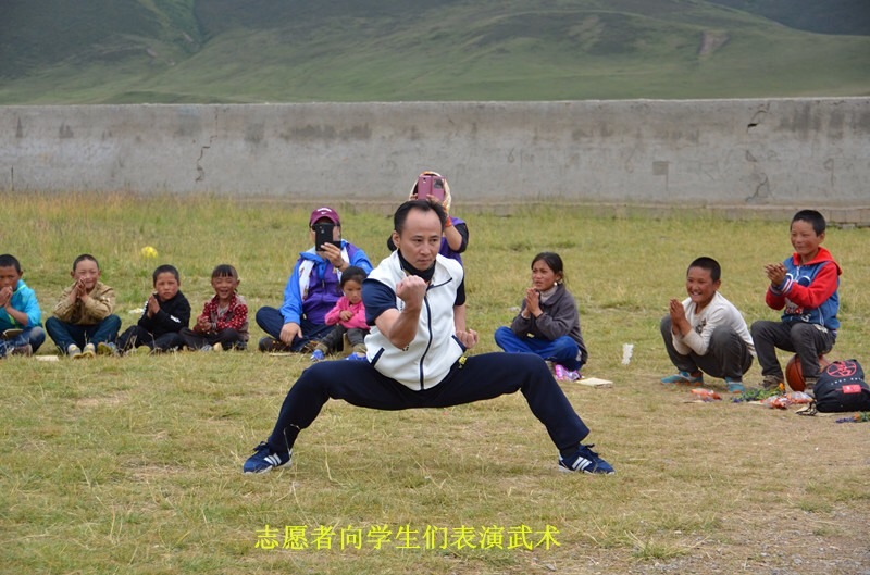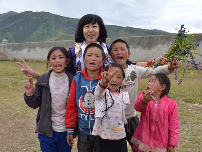 善基金捐贈人、愛心大使、志愿者等在玉樹州巴塘鄉那義角小學進行捐贈活動