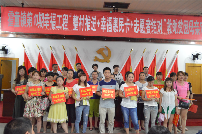 構(gòu)建“貧困母親大救助體系”是蕉城區(qū)幸福工程工作的一大特色。2015年9月1日,蕉城區(qū)在霍童鎮(zhèn)投入34萬幸福工程款啟動“整村推進(jìn)+幸福惠民卡+志愿者結(jié)對”新模式,全力救助謝銀玲等30位山區(qū)貧困母親。新一輪滾動在原來一家一戶的基礎(chǔ)上以“整村推進(jìn)、產(chǎn)業(yè)帶動”為平臺,優(yōu)先選定霍童、后洋、大石、上洋、興賢、邑坂、鄭厝等7個山村,按照“規(guī)模救助、集中實施、減少成本”的原則,采用整體扶持、一村一品、連片開發(fā)、集中實施的方法運作,每個貧困母親獲得10000~30000元不等的資助款,發(fā)展新品種茶葉種植、家禽家畜養(yǎng)殖、南雜店小吃店等脫貧項目實現(xiàn)致富夢想,受益人群107人。發(fā)款儀式上,霍童鎮(zhèn)還發(fā)放“福永興超市”和“景長百貨”兩家商場購物的“幸福工程惠民卡”30張,總價值3000元,每個獲贈的幸福工程受助母親可享受100元的免費購物,超出部分按照九折優(yōu)惠,同時購買家電還享受國家節(jié)能補(bǔ)貼、三包服務(wù),所有優(yōu)惠家電明碼標(biāo)價并送貨上門,真正讓落實計生政策的家庭經(jīng)濟(jì)有甜頭、生活有奔頭,提高貧困母親發(fā)展能力的同時提升她們健康幸福指數(shù),實現(xiàn)“扶助貧困母親,共享人口紅利”的目的。同時,霍童鎮(zhèn)還為每位幸福工程受助母親配對一個結(jié)對幫扶志愿者,實施“幫一帶一”結(jié)對幫扶,構(gòu)建幫思想、幫技能、幫項目、幫資金、幫籌劃產(chǎn)業(yè)發(fā)展的幫扶模式,形成由貧困母親“點菜”、黨員干部“下廚”的因戶施策、群眾缺啥補(bǔ)啥的扶持動態(tài)管理新格局,為全面做好幸福工程新一輪扶貧新常態(tài)工作開展提供了強(qiáng)有力的人力組織支撐保障。