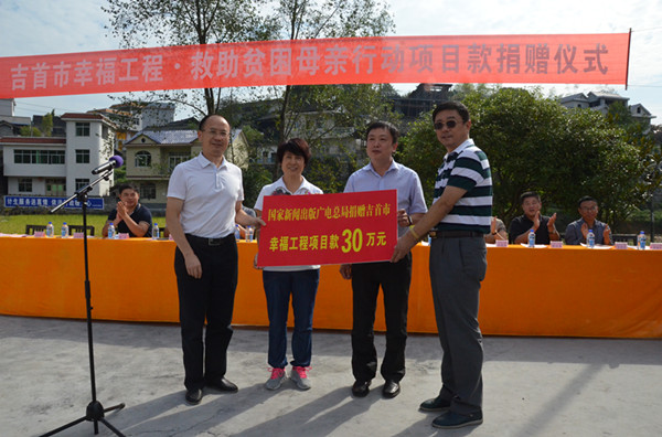 幫助困境母親,建設(shè)幸福家庭9月14日至16日,國(guó)家新聞出版廣電總局一行5人,在總局直屬機(jī)關(guān)黨委副書(shū)記瞿家茂的率領(lǐng)下來(lái)到湖南省湘西州吉首市,對(duì)即將設(shè)立的結(jié)對(duì)救助項(xiàng)目點(diǎn)進(jìn)行了考察,中國(guó)人口福利基金會(huì)國(guó)內(nèi)項(xiàng)目部部長(zhǎng)劉麗容、湖南省人口健康福利基金會(huì)理事長(zhǎng)彭祥興等陪同考察。