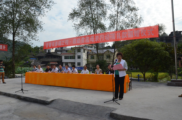 劉麗容代表中國(guó)人口福利基金會(huì)感謝國(guó)家新聞出版廣電總局對(duì)幸福工程的支持、對(duì)貧困母親的愛(ài)心奉獻(xiàn)與付出;感謝湖南省、市、縣各級(jí)黨委與政府對(duì)幸福工程在人力、物力、財(cái)力上的支持;感謝各級(jí)項(xiàng)目管理者的辛苦付出;感謝受助母親的自強(qiáng)不息。希望吉首市計(jì)生協(xié)會(huì)認(rèn)真管好項(xiàng)目,希望受助母親能夠珍惜愛(ài)心,用好善款,盡快脫貧致富。