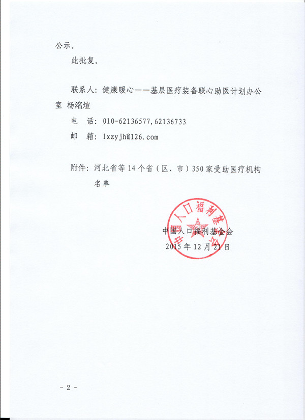 經(jīng)健康暖心——基層醫(yī)療裝備聯(lián)心助醫(yī)計劃項目辦公室審核,我辦同意為河北等14個省(區(qū)、市)350家醫(yī)療機構(gòu)提供醫(yī)療裝備捐贈,具體受助醫(yī)療機構(gòu)名單詳見附件。