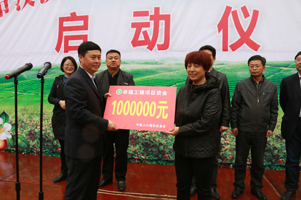 啟動儀式上,省計生協會副會長兼秘書長李廣勤宣布項目啟動,劉麗蓉部長代表中國人口福利基金會向漢濱區發放了幸福工程項目資金100萬元,10名受助貧困母親代表接受了救助款。此次啟動的是萬畝油茶大豆基地建設項目,實施周期3年。項目按照“公司+基地+農戶”的運作模式,為40名貧困母親提供幫扶,項目實施后預計受助母親年均可增收5000余元,三年后使40名貧困母親走向小康。