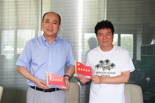 張暉向黨員發(fā)放“黨員示范崗”標(biāo)牌