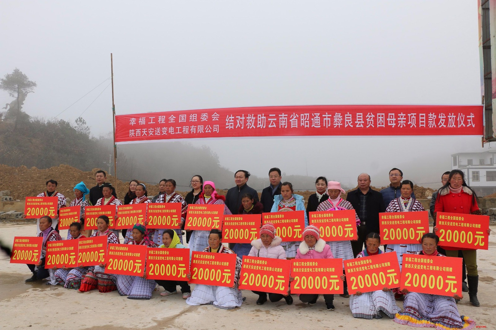 2017年3月14日,幸福工程全國組委會、陜西天安送變電工程有限公司在彝良仙馬村舉行結對救助貧困母親項目款發放儀式。中國人口福利基金會、幸福工程組委會項目主管王倩,云南省計生協常務副會長易會安,省計生協兼職副會長、昭陽區計生協會長郭映輝,幸福工程志愿者、天津師范大學于全興教授,昭通市委常委、副市長沈文海,昭通市計生協常務副會長秦科華出席此次項目款發放儀式。
