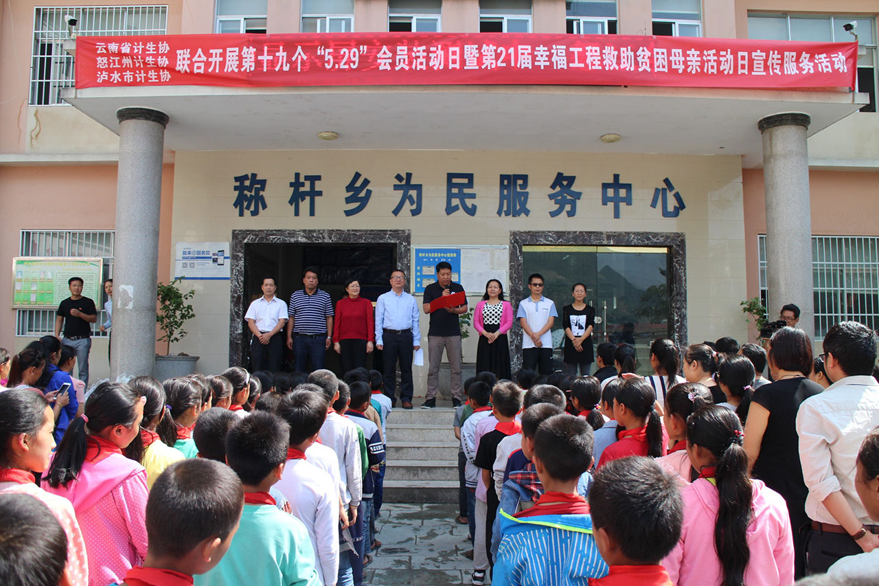 幫助困境母親,建設幸福家庭5月25日,云南省計生協、怒江州計生協和瀘水市計生協在稱桿鄉聯合開展第19個“5.29”會員活動日暨第21屆幸福工程-救助貧困母親活動日宣傳服務活動。云南省計生協副會長兼秘書長蘇建波出席活動儀式并作講話,活動儀式由瀘水市副市長祝文明主持。