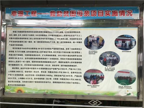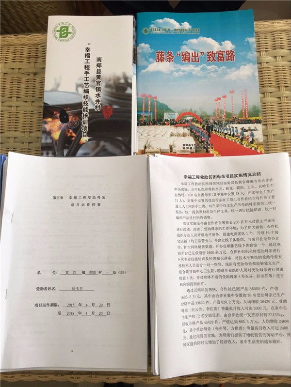 幫助困境母親,建設幸福家庭9月10日,在陜西省計生協會秘書長李廣勤等人的陪同下,中國人口福利基金會國內項目部部長劉麗容,考察了南鄭縣黃官鎮水井村幸福工程手工藝編織技能培訓項目。